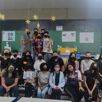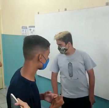 A tarefa foi realizada em sala de aula, mas quem está em casa remotamente também teve oportunidade de realizá-la. No caso, puderam postar no google sala de aula.